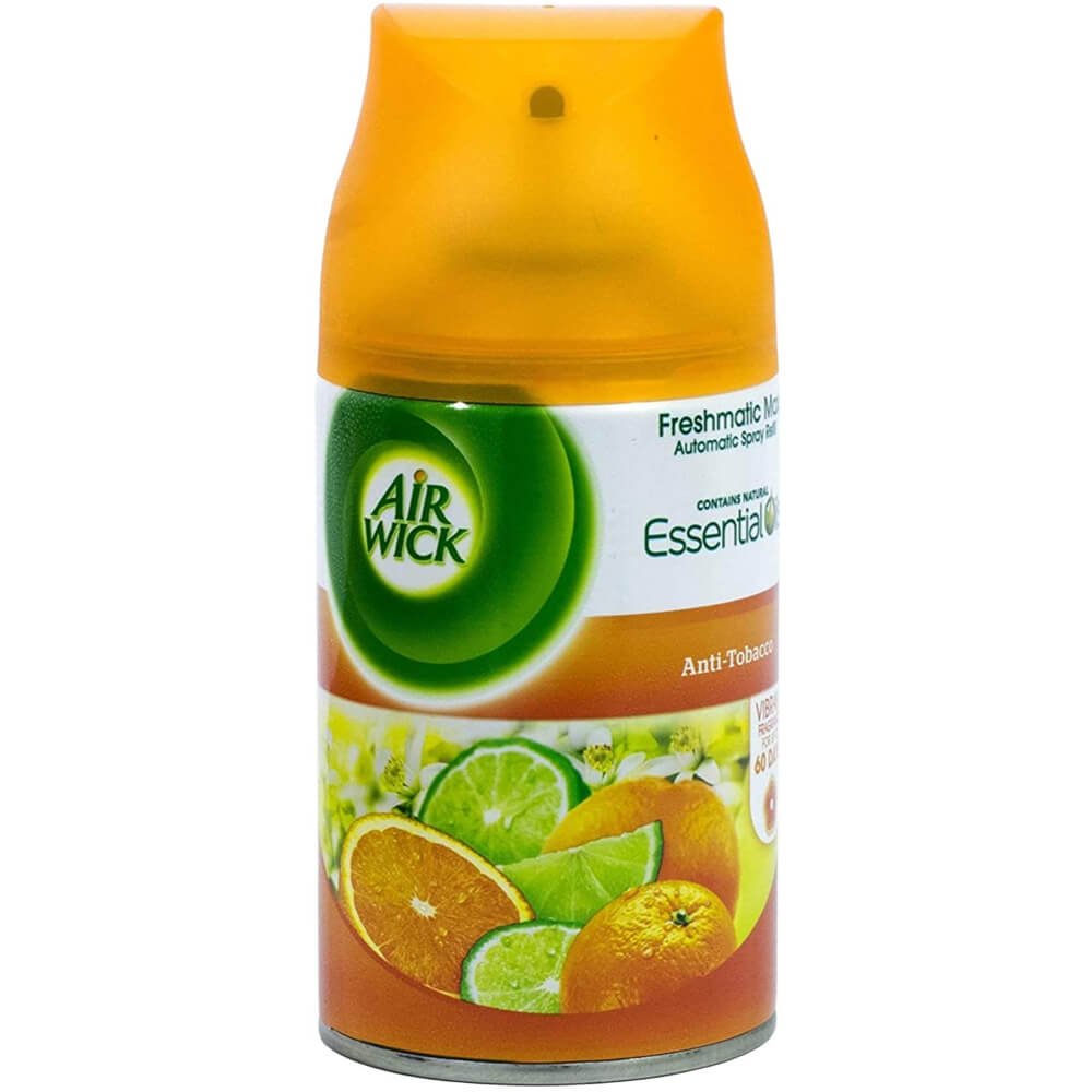 Rezerva Spray Odorizant AIR WICK Freshmatic Antitabac, 250ml, Parfum de Portocala, Spray tip Aerosol, Odorizant Camera, Spray Odorizant Air WICK, Odorizant Antitabac, Odorizant Spray pentru Camera