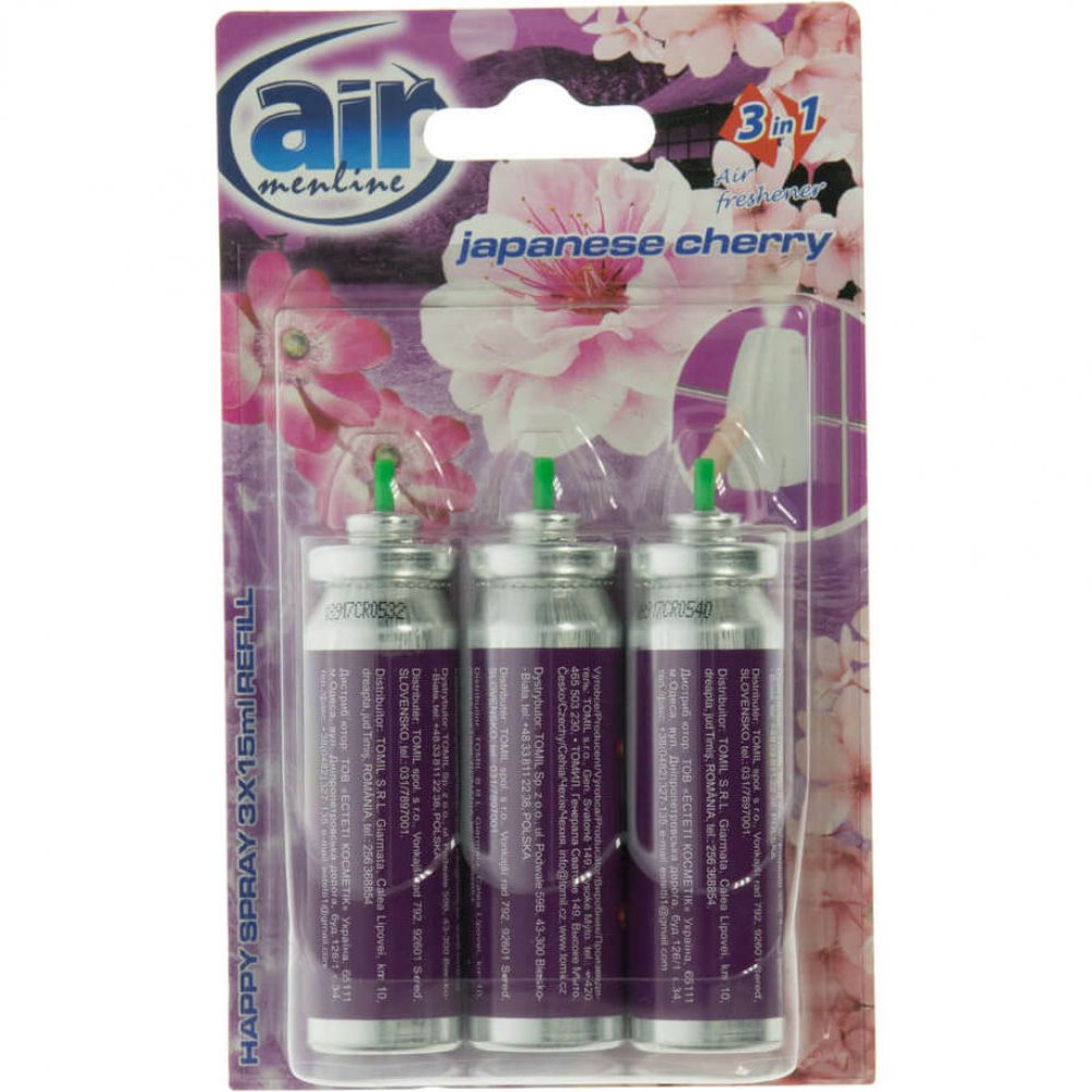 Rezerve Odorizant Spray AIR Japanese Cherry, 15 ml, 3 Buc/Set, Rezerve Odorizante Camera, Rezerve Odorizante Casa, Rezerve Odorizant Pulverizator de Camera, Rezerve Odorizante cu Pulverizare pentru Camera, Rezerve Odorizante Spray pentru Interior