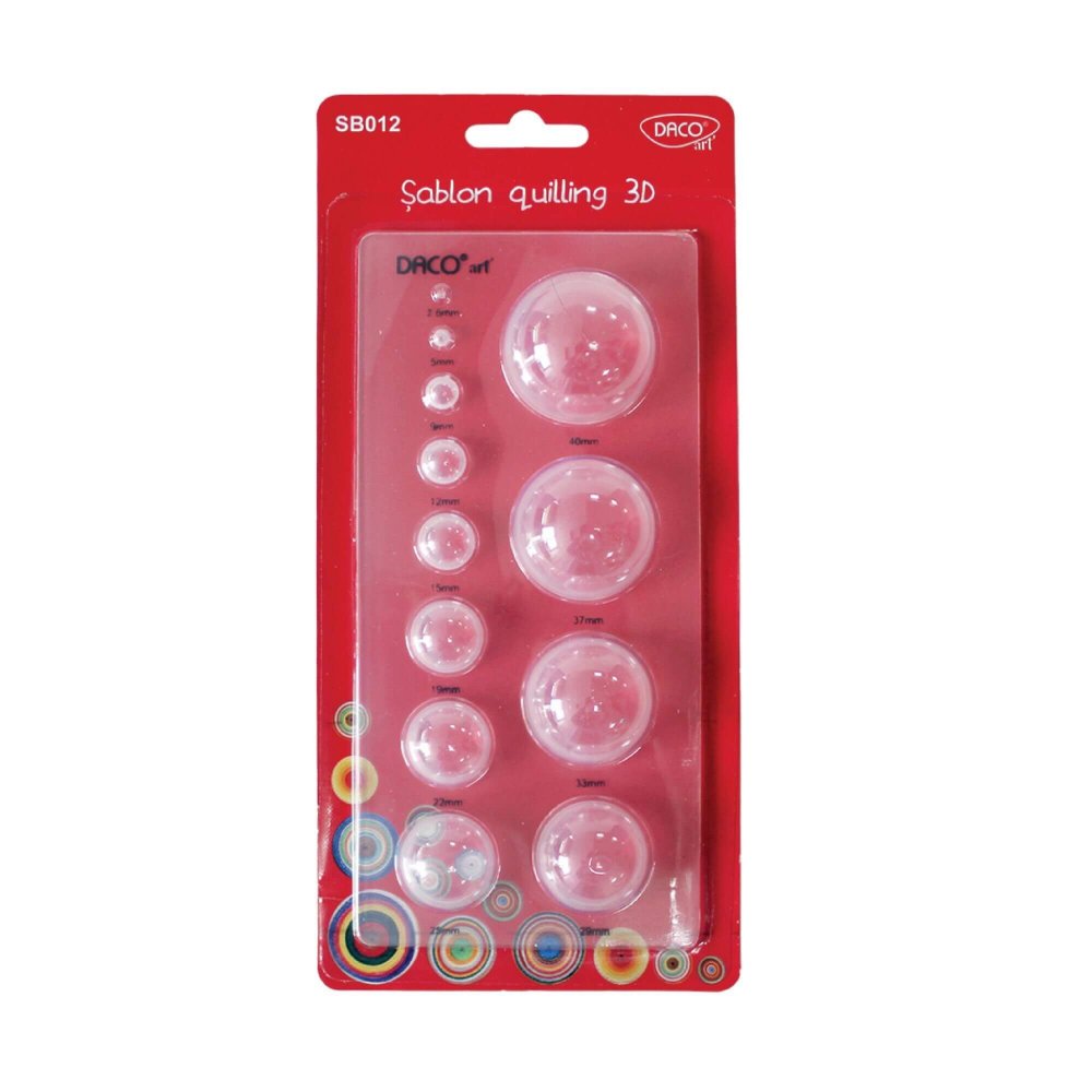 Sablon Quilling 3D cu Modele Rotunjite DACO, 9x19 cm, 12 Suprafete Modelare, Plastic, Transparent, Sablon Quilling, Sablon 3D, Sablon Quilling cu Forme Circulare, Sablon Quilling 3D pentru Scoala