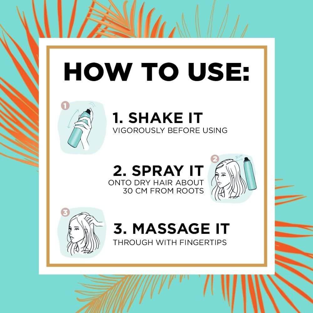 - Fiind ambalat intr-un tub spray de 200 ml, samponul uscat se aplica rapid si usor;