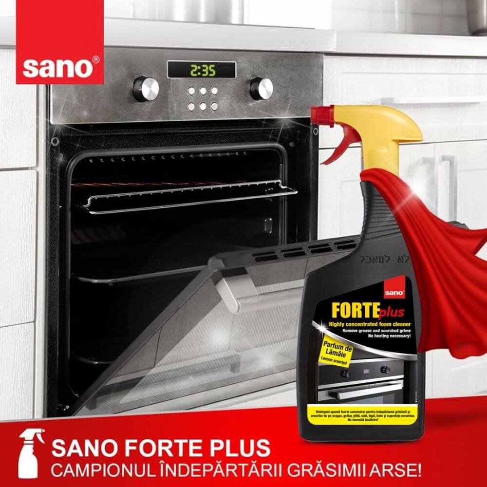 SANO Forte Plus Lamaie, 750 ml, pentru Indepartarea Grasimilor de pe Aragaz, Detergent Spuma Concentrat, Solutie Importiva Grasimii Arse, Solutie Aragaz cu Pulverizator, Detergenti cu Pulverizator, Solutie Indepartare Grasime si Arsuri