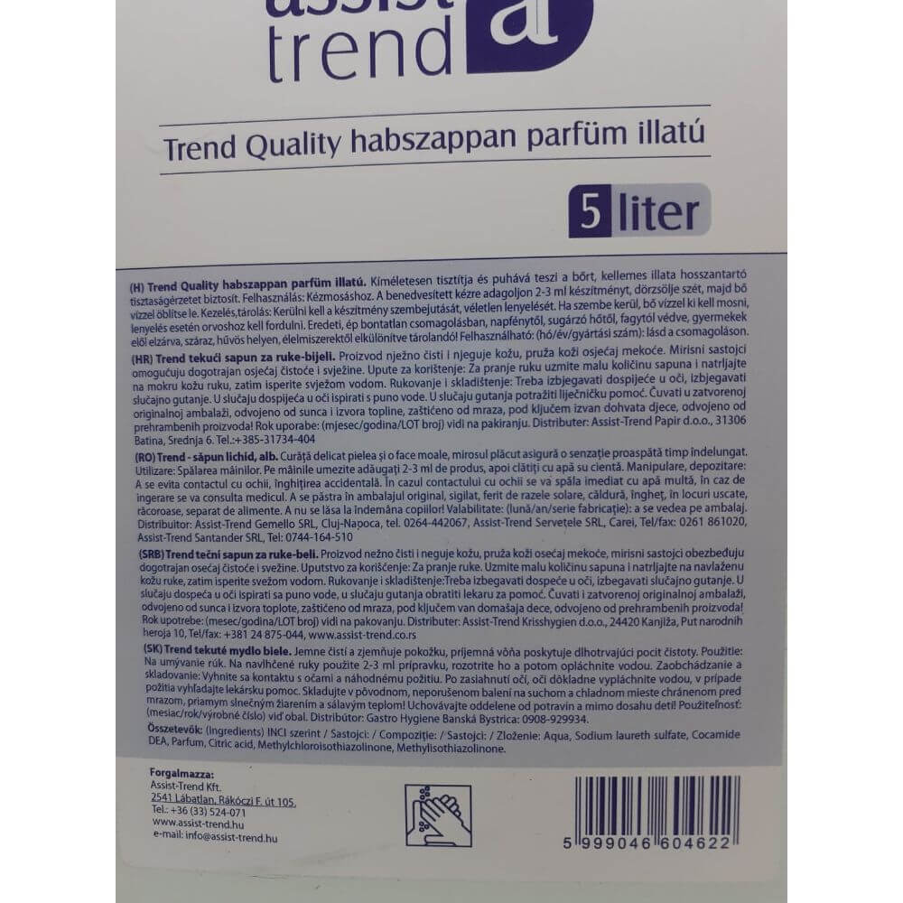 Sapun Lichid Spuma Assist Trend, Alb, 5 L, Bidon Sapun Lichid Spuma, Sapun Lichid Spumant, Sapun pentru Maini, Sapun Maini, Sapun Lichid pentru Maini, Sapun Delicat, Sapun Lichid Delicat, Sapun Piele Moale, Sapun pentru Piele Moale