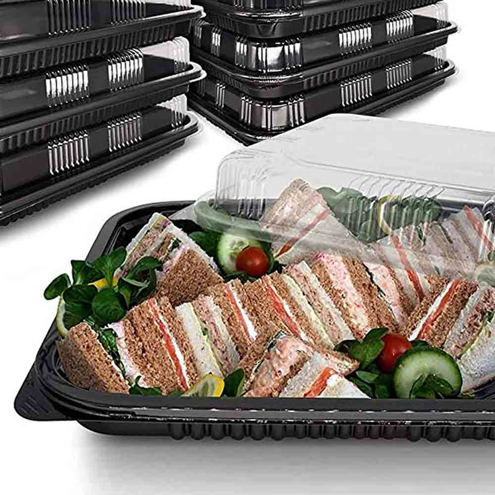 Set 10 Platouri Negre PP + Capac, 1500 CC, Dimensiune 335x250x38 mm