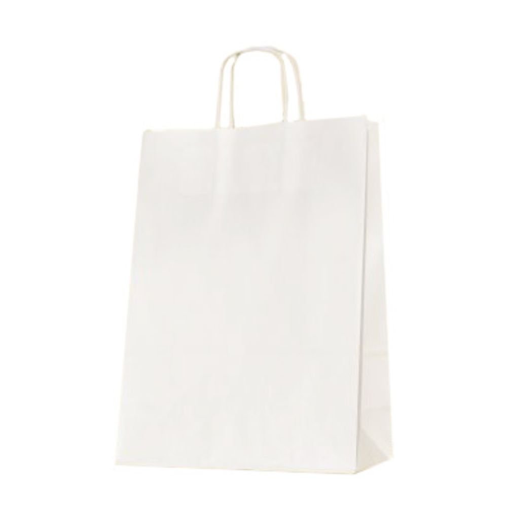 Set 100 de Sacose Albe din Hartie Reciclata cu Maner Rasucit, 260x120x350 mm, Hartie Kraft Albit 90 g