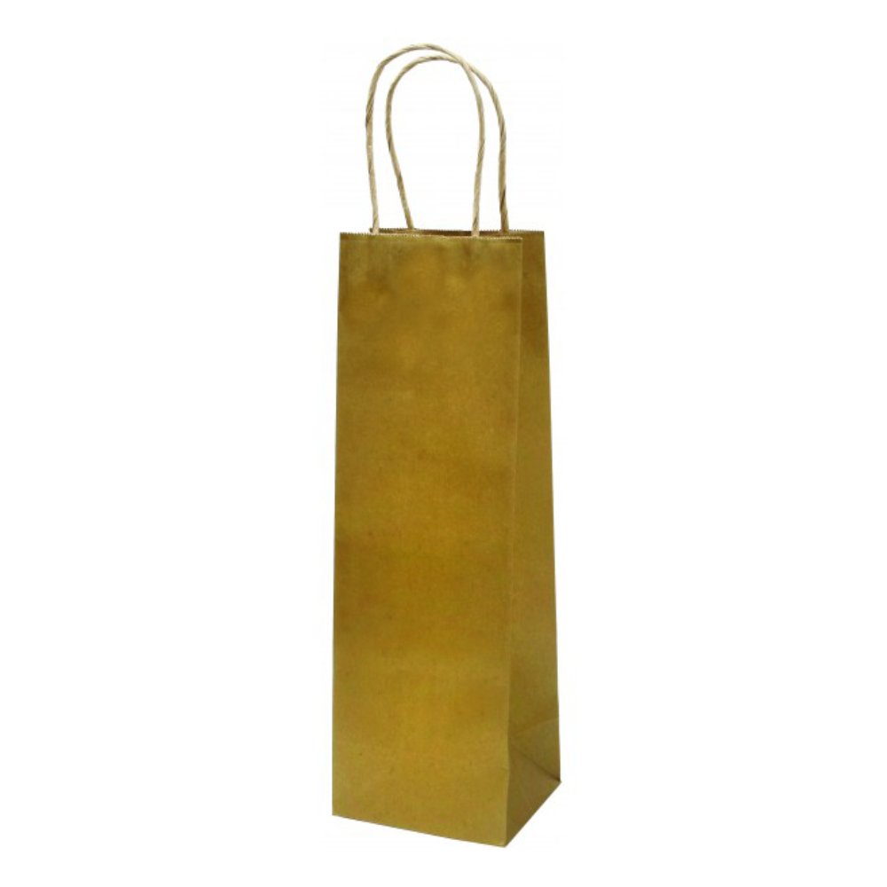 Set 100 de Sacose din Hartie pentru Sticle, Model Auriu, 14x8x39 cm, Hartie Kraft Alba 90 g/m², Maner Sfoara