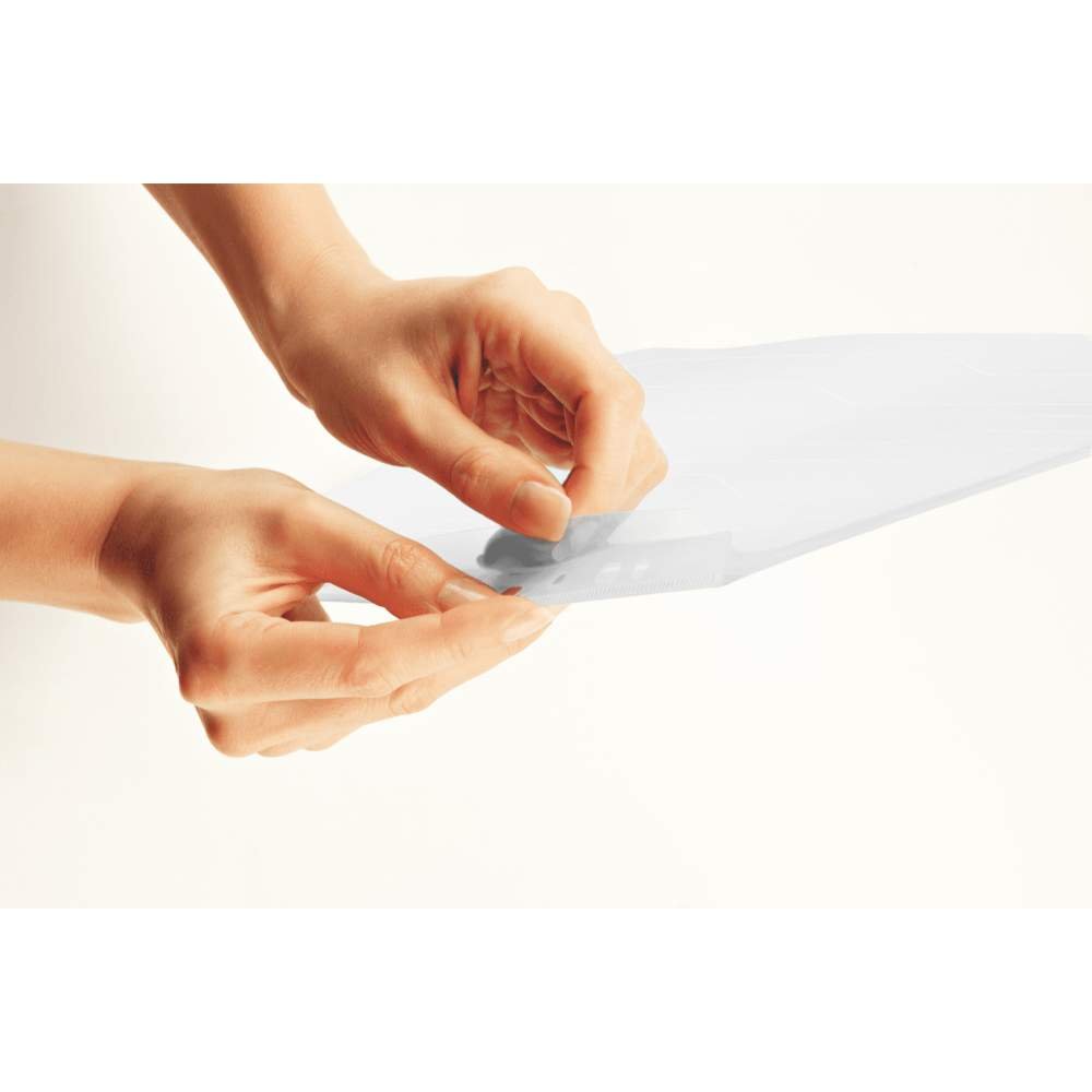 - Deschiderea superioara permite accesul la hartie fara a scoate folia;