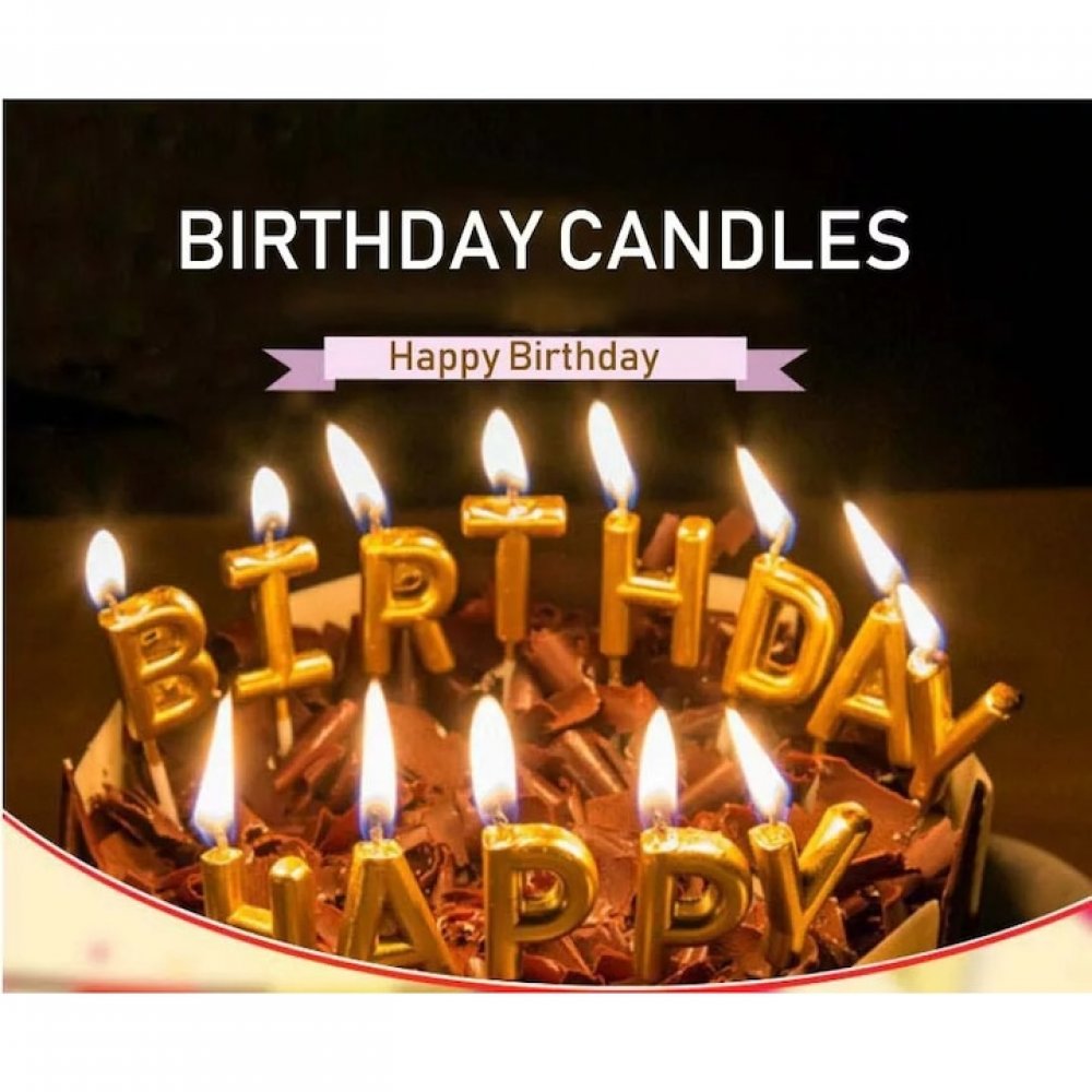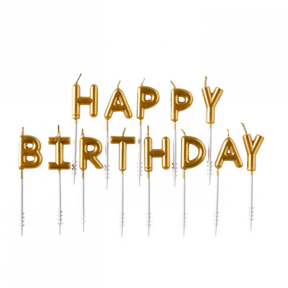 Set 13 Lumanari Pentru Tort Happy Birthday, Culoare Auriu