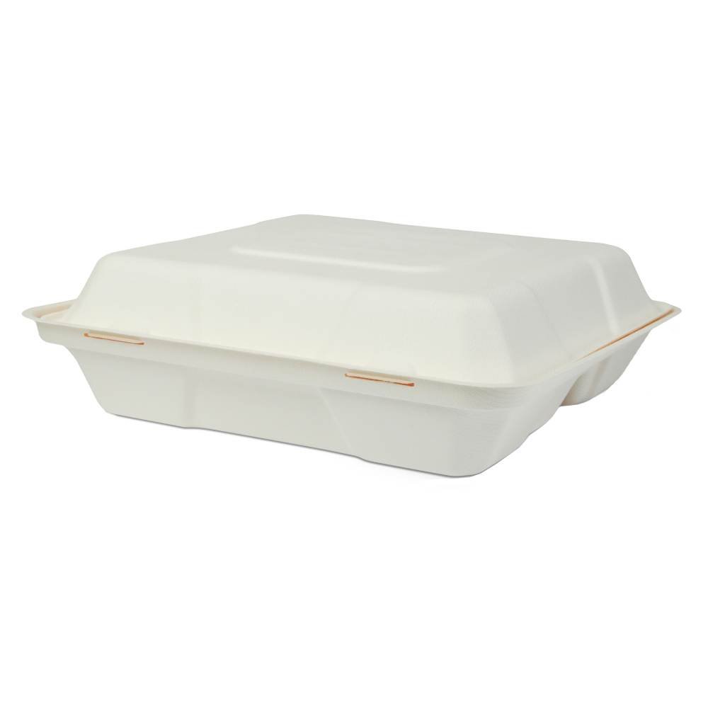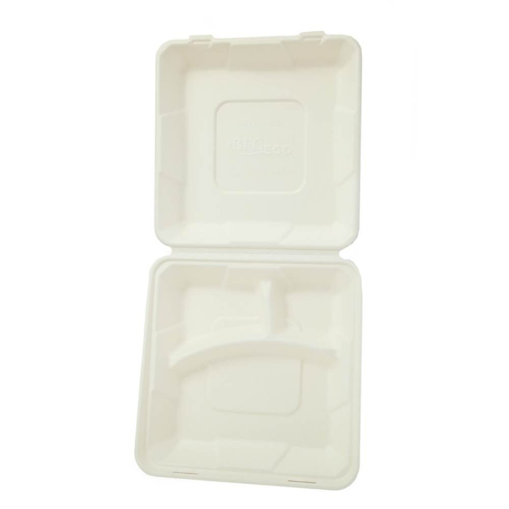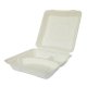 Set 200 Caserole Biodegradabile cu Capac pentru Meniu din Fibra Lemnoasa, Dimensiune 245x245x75 mm, 3 Compartimente