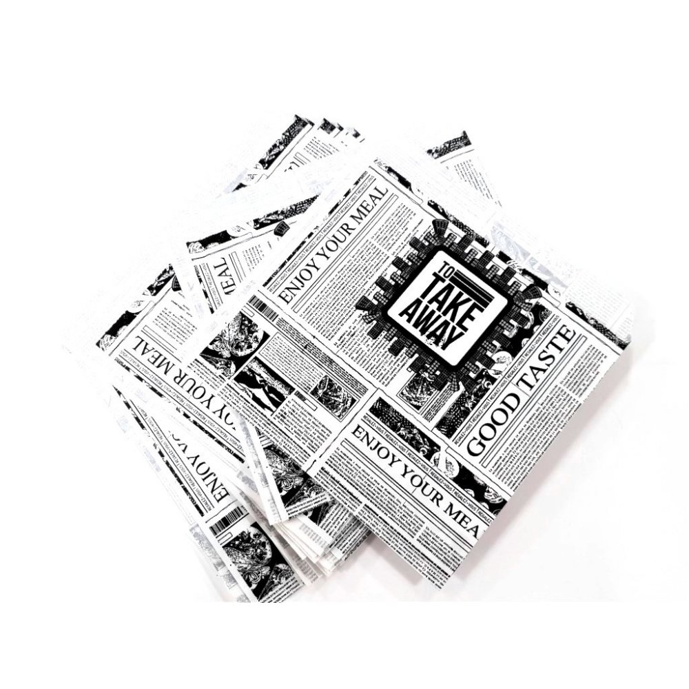 Esti in cautare de ambalaje tip fast food? Punem la dispozitie set 2000 coltare albe, dimensiuni 16.5x17 cm, gramaj hartie 40+10 g/m², culoare alba cu model ziar Take Away, utilizate pentru servirea mancarii de tip fast food, ambalajul din hartie fiind ideal pentru servirea de burgeri.