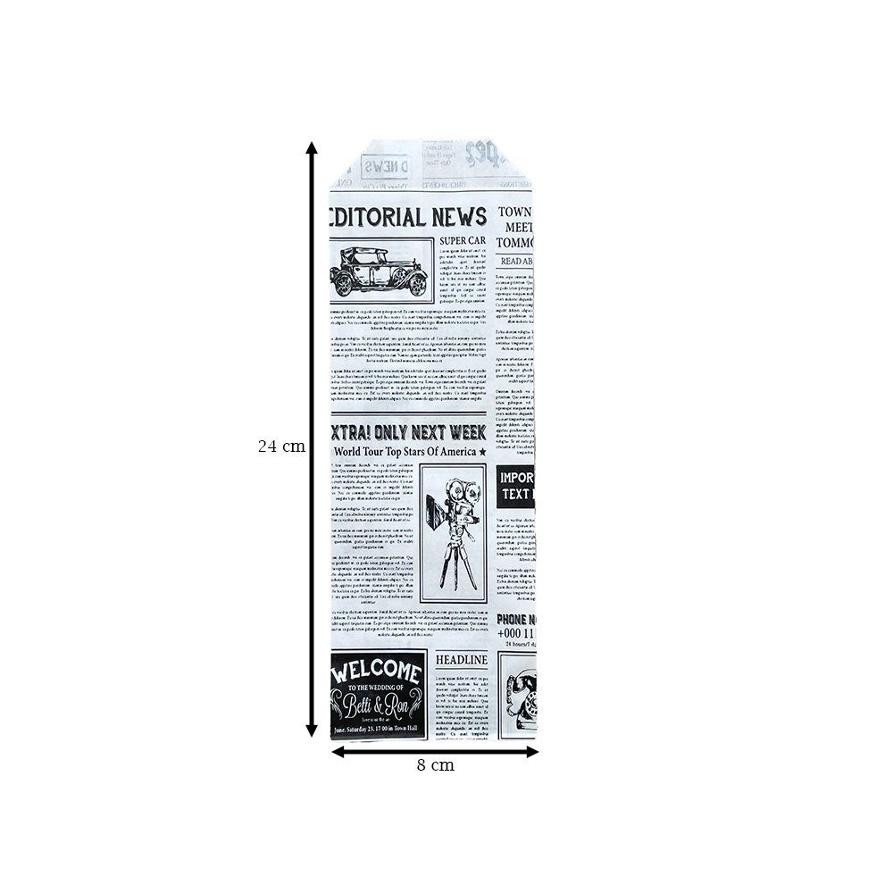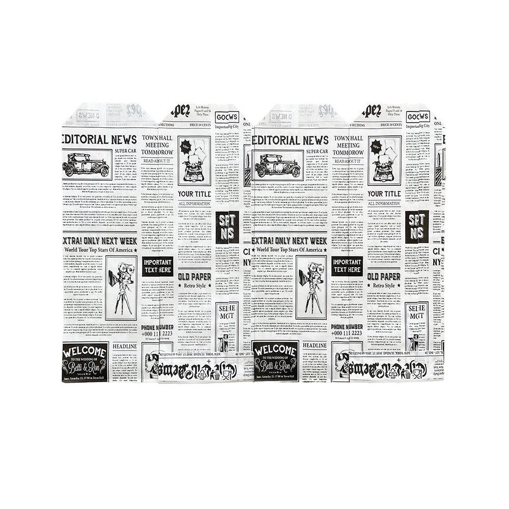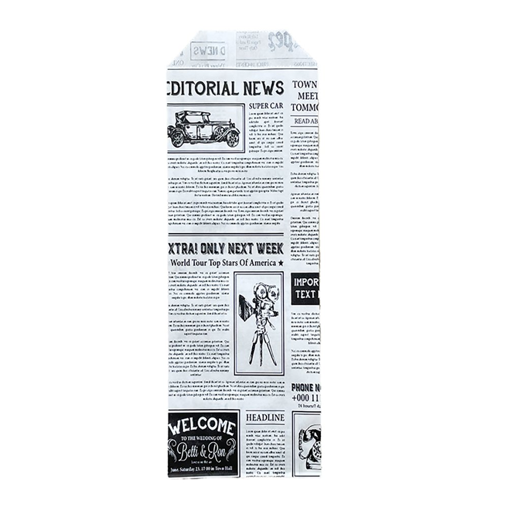Set 2000 Plicuri Albe pentru Tacamuri cu Model Ziar, 35 g/m2, Hartie Imprimata, Punga pentru Tacamuri, Pungi pentru Tacamuri, Bax de Pungi pentru Tacamuri, Baxuri de Pungi pentru Tacamuri, Plic pentru Tacamuri