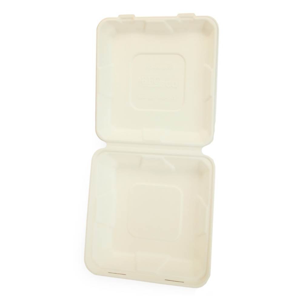 Set 250 Caserole Biodegradabile cu Capac pentru Meniu din Fibra Lemnoasa, Dimensiune 215x215x60 mm, 1 Compartiment