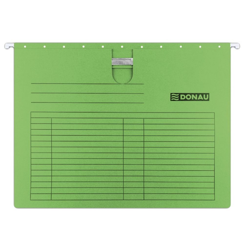 Vindem set 5 dosare carton suspendabile, A4, cu sina si eticheta, culoare verde. Produsul este fabricat din carton de 230 g/mp si are o capacitate de pana la 400 coli. Va ofera acces facil la fisiere si permit personalizarea cu ajutorul etichetei din plastic.