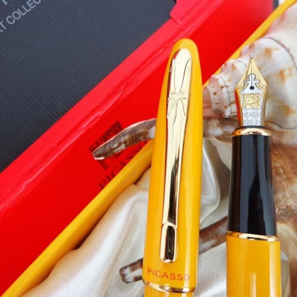 - Stiloul Picasso are corpul metalic de culoare galbena cu