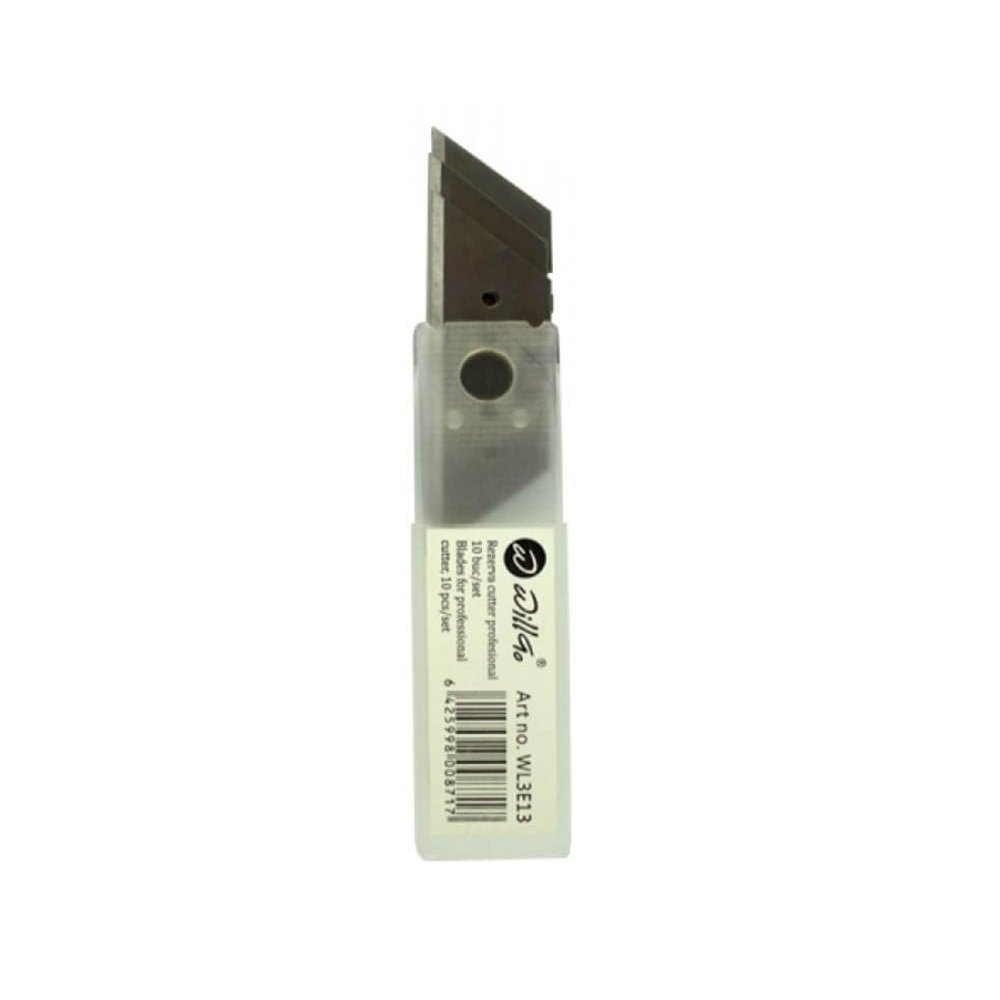 Comercializam seturi de 10 lame de rezerva pentru cuttere profesionale Willgo din aliaj de zinc, cu latimea lamei de 18 mm si forma trapezoidala, confectionate din otel carbonat aliat.