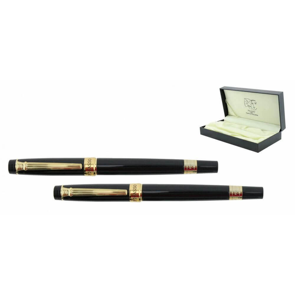 Set Pix si Stilou PICASSO, Penita Placata cu Aur 18k, cu Convertor, Corp Negru, Set Pix si Stilou, Set Pix si Stilou Picasso, Pix Placat cu Aur, Stilou Lux, Stilou Placat cu Aur, Stilou Picasso, Pix Picasso