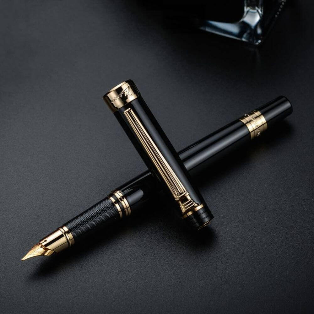 cerneala sau patron, cu penita iridium placata cu aur de 18 Karate;
