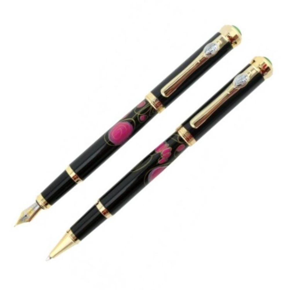 Set Pix si Stilou PICASSO, Penita Placata cu Aur 22k, cu Convertor, Corp Negru, Motive Florale, Set Pix si Stilou, Set Pix si Stilou Picasso, Pix Placat cu Aur, Stilou Lux, Stilou Placat cu Aur, Stilou Picasso, Pix Picasso