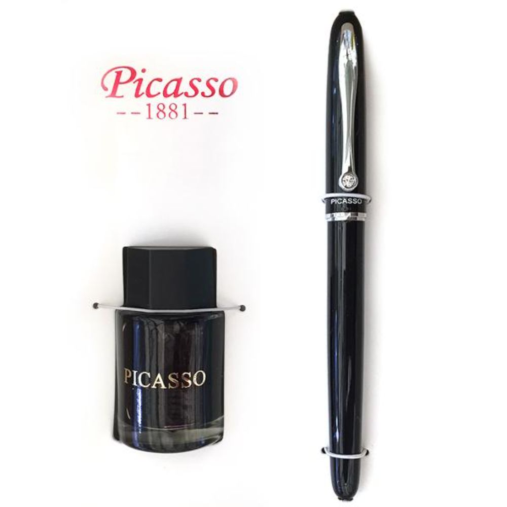 Set Stilou si Calimara de Cerneala Picasso, Culoare Negru, Model 656N