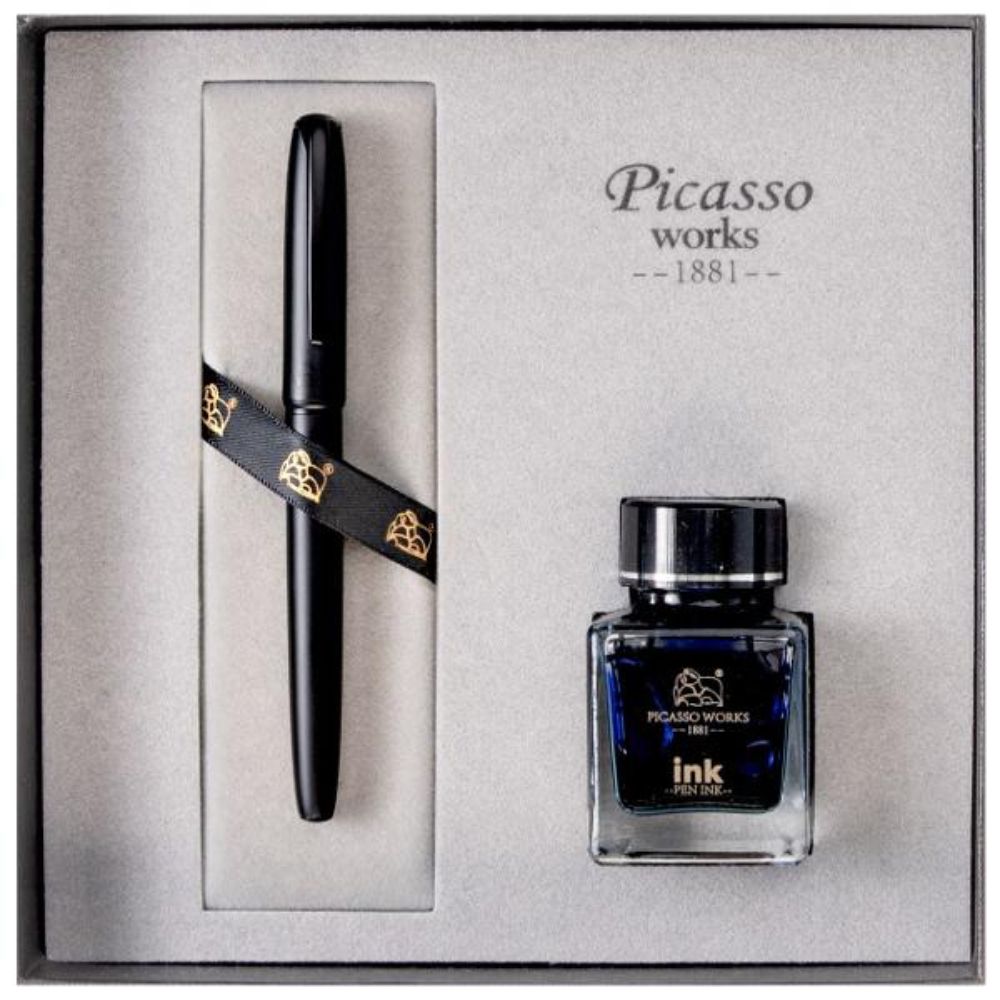 Set Stilou si Calimara de Cerneala Picasso, Culoare Negru, Model 8858N