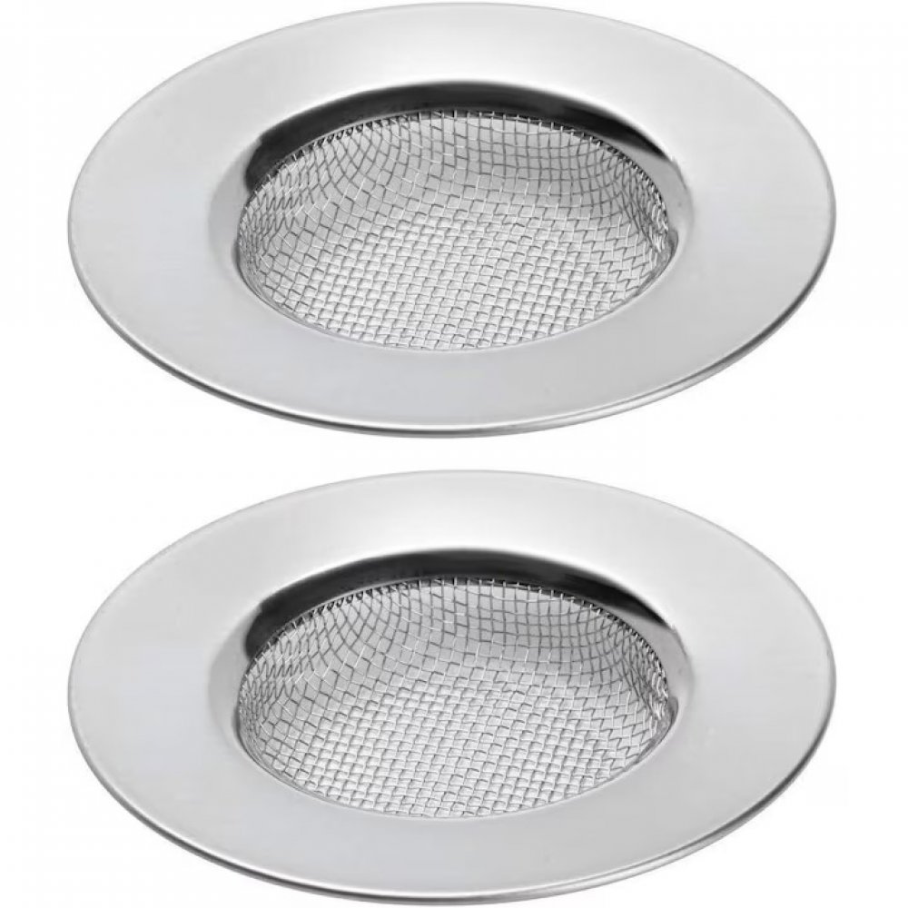 Set practic de două site de scurgere din inox, perfect pentru blocarea resturilor alimentare și evitarea înfundărilor la chiuvetă. Ideal pentru o bucătărie ordonată și fără griji, oferind protecție și durabilitate zilnică.