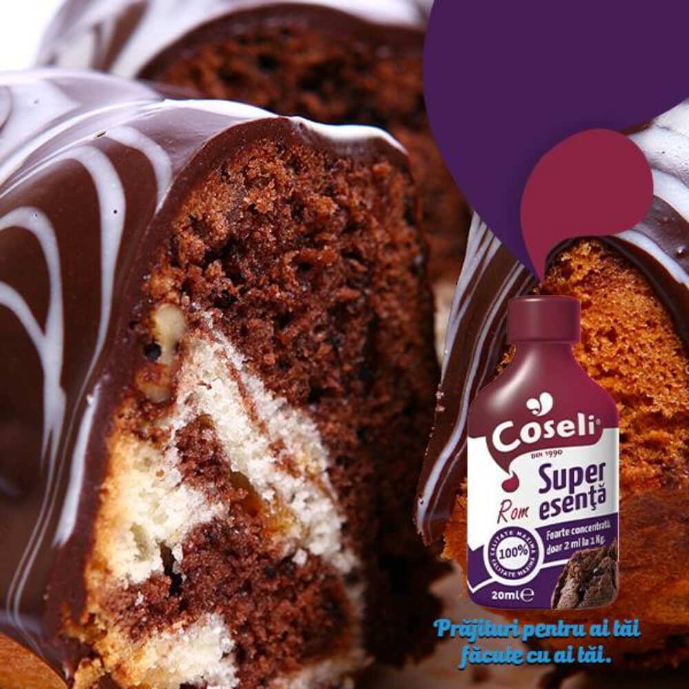 - Aroma de rom a fost special produsa in laboratorul Coseli pentru Esenta de Rom, fiind destinata expres aromarii dulciurilor pe care le pregatesti;