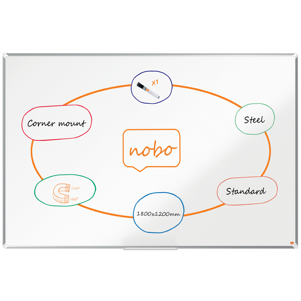 Tabla NOBO Premium Plus, otel lacuit, 180x120 cm, magnetica, include marker si tavita, alb