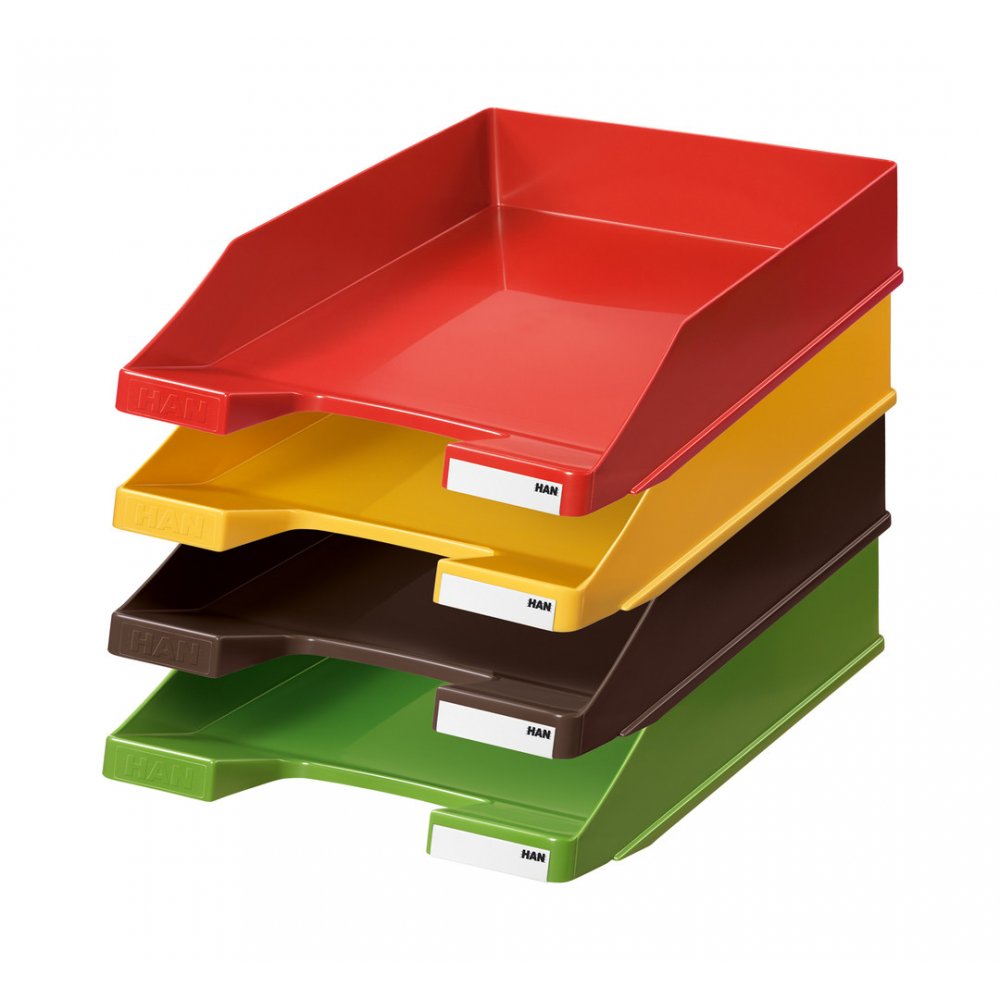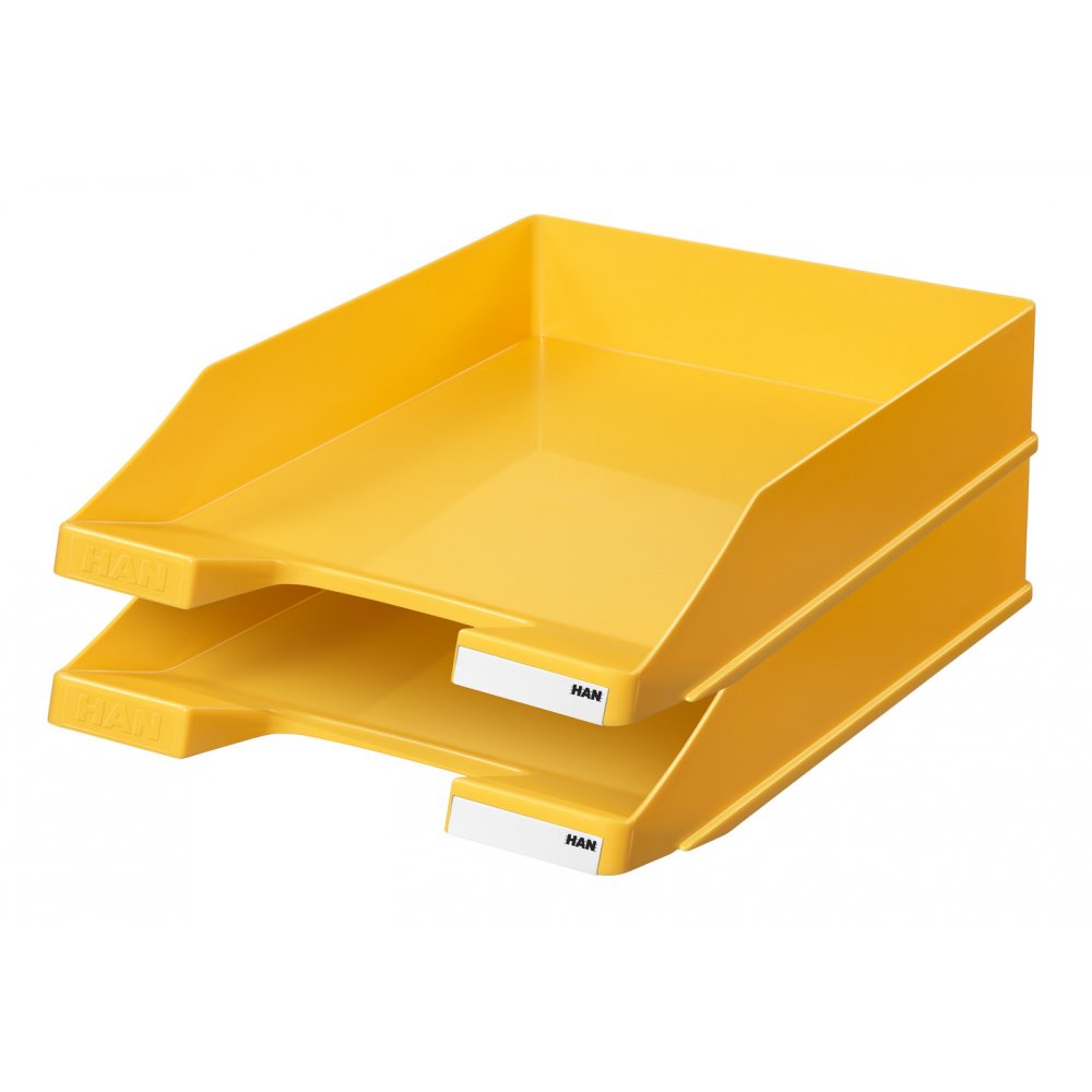 # Tava pentru documente cu design clasic. # Ajutor solid si durabil pentru orice birou destinat documentelor cu format A4/C4. # Este ideala pentru birou si compatibila cu toate tavile standard. # Sectiunea frontala usor inclinata impiedica alunecarea documentelor. # Decupajul cu maner larg al raftului de fisiere asigura accesul facil la documente. # Dimensiuni ( l x L x i): 255 x 348 x 65 mm. # Material: plastic de calitate superioara, polistiren. # Culoare: galben.