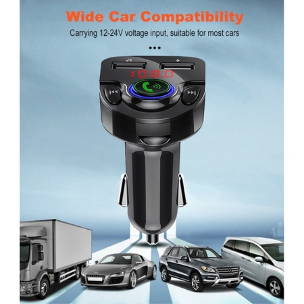 Transmitator FM Bluetooth 5.0, Player Muzical, Convorbiri Telefonice Hands-Free, Dual USB, Port USB Incarcare Rapida, Negru