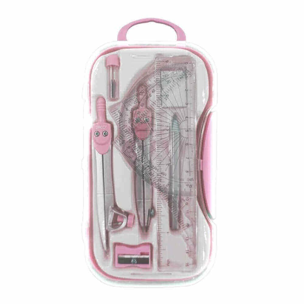 raportor, 1 ascutitoare, 1 radiera, 1 creion, 1 set mine compas, cutie plastic;