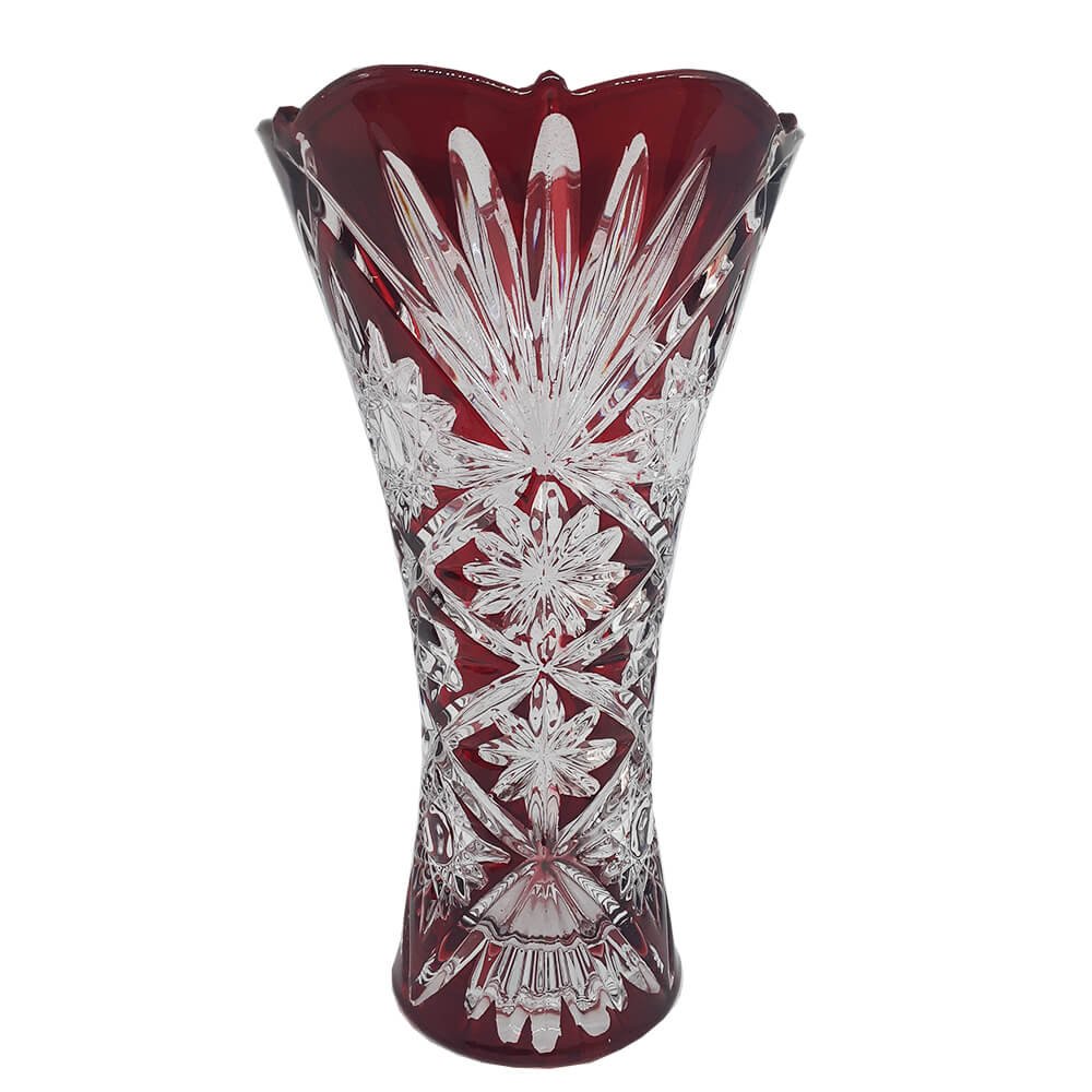Vaza Mica de Sticla, 20 cm, Rosu Rubin, Model Floral, Vaze Mici de Sticla, Vaze si Boluri Decorative, Vaze Decorative pentru Flori, Vaza Decorativa Flori, Articole Decorative pentru Casa, Vaza din Sticla cu Model
