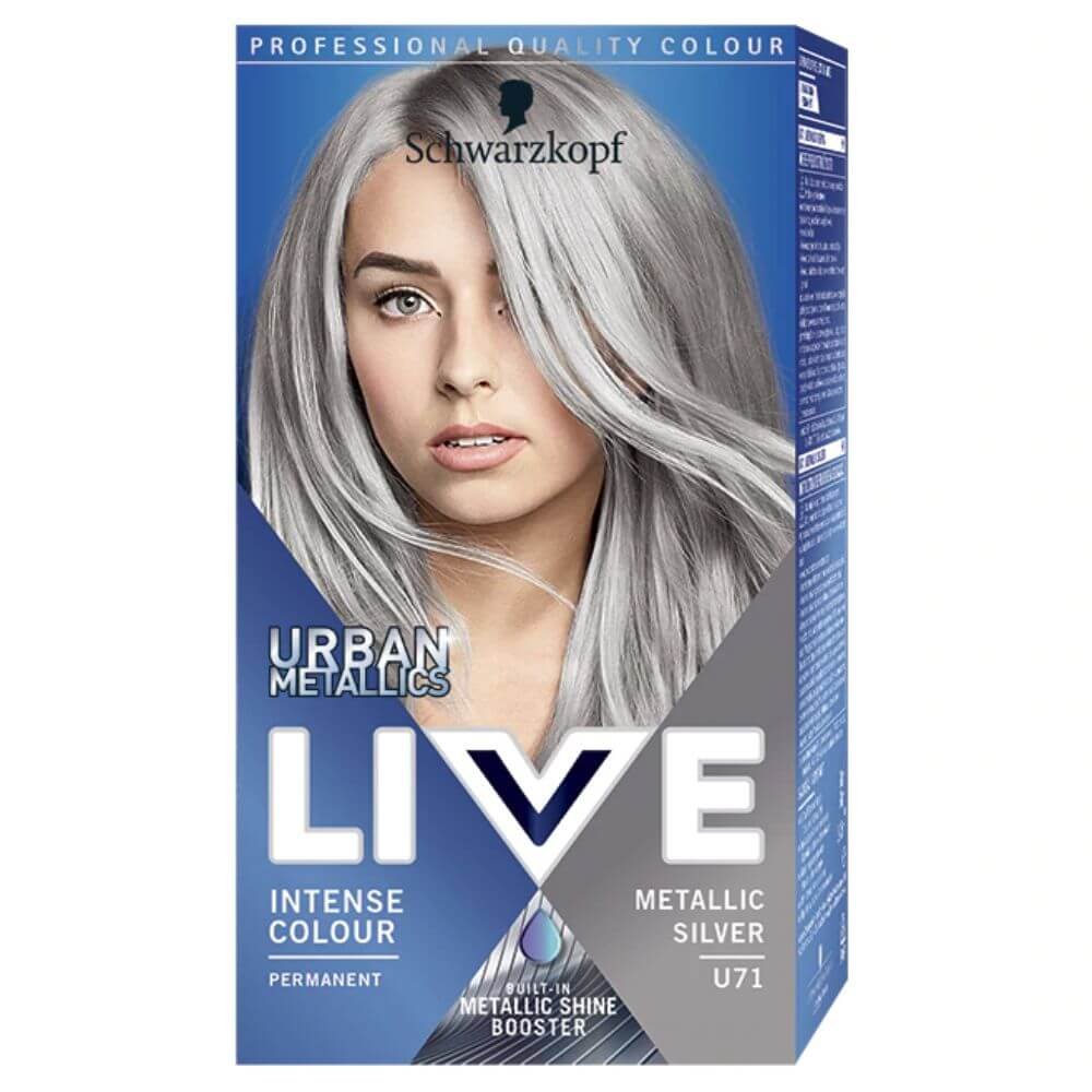 Vopsea Par Permanenta LIVE Urban Metallics, U71 Metallic Silver, 142.5 ml, Vopsea de Par Permanenta Intense Colour Metallic Shine Booster, Crema Coloranta de Par, Vopsele de Par Metalice, Vopsea de Par cu Stralucire Metalica